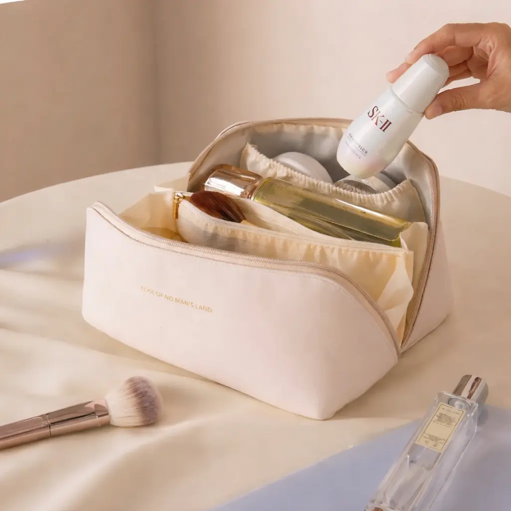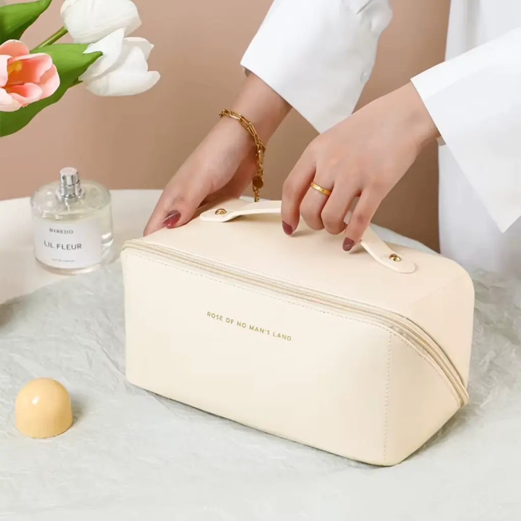 Este neceser organizador impermeable está diseñado para organizar tus cosméticos y artículos de cuidado personal de forma práctica. Su formato permite distribuir el contenido en distintos compartimentos, facilitando el acceso y el orden tanto en el uso diario como en viajes.