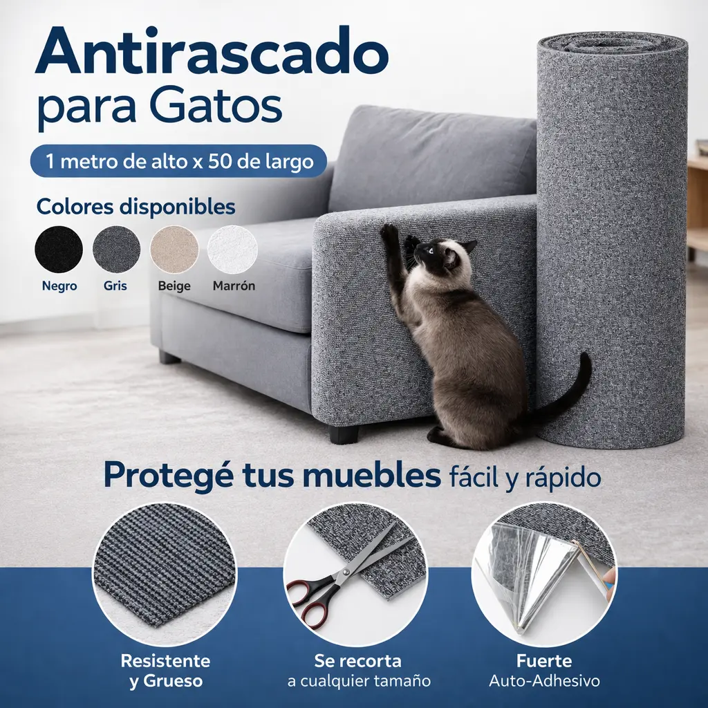 Su superficie texturizada redirige el instinto natural de rascar, protegiendo la tela y la decoración del hogar.